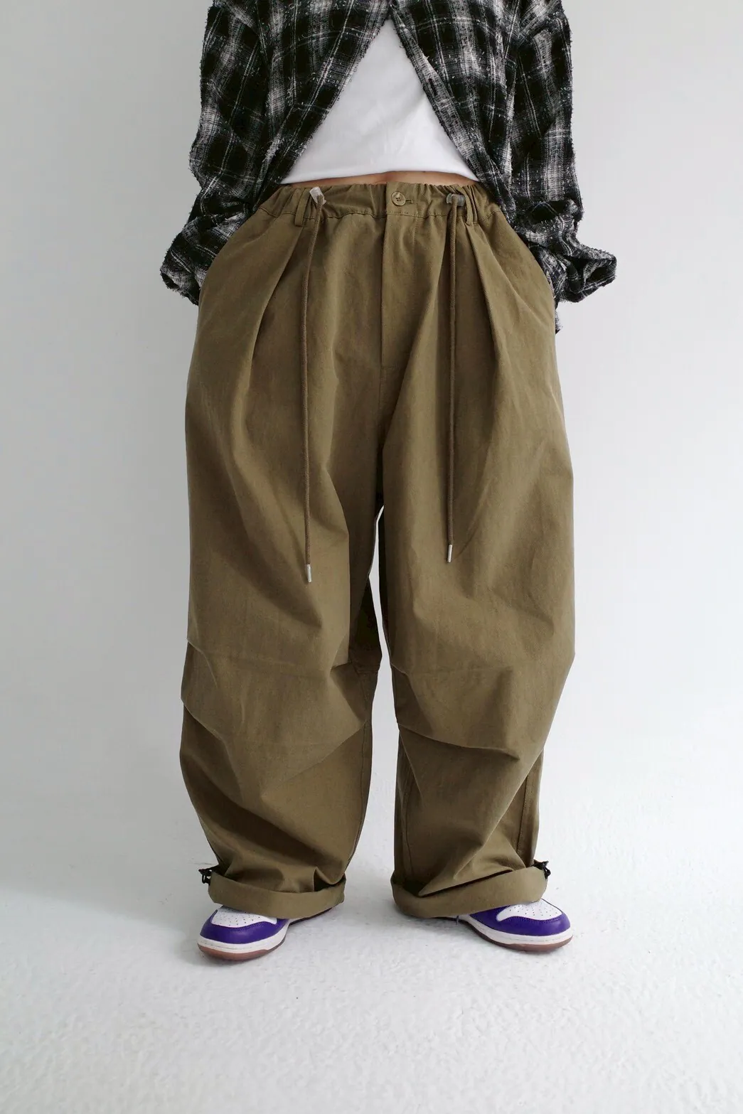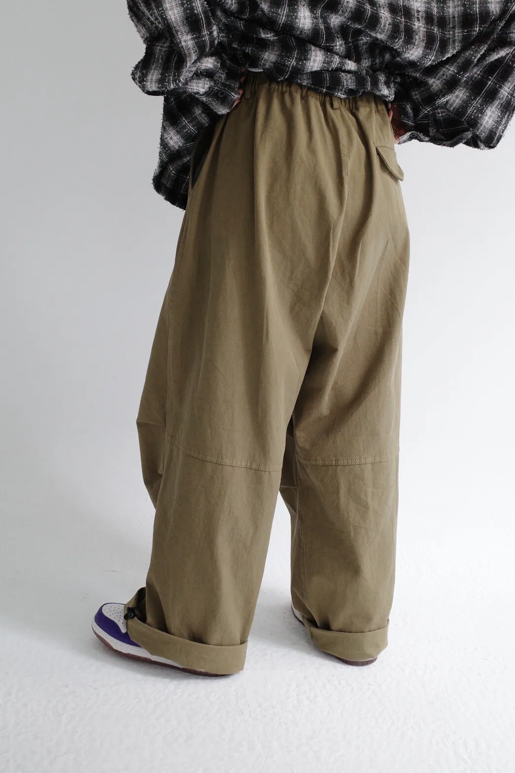 褲頭為 開釦拉鍊/鬆緊綁帶壓釦